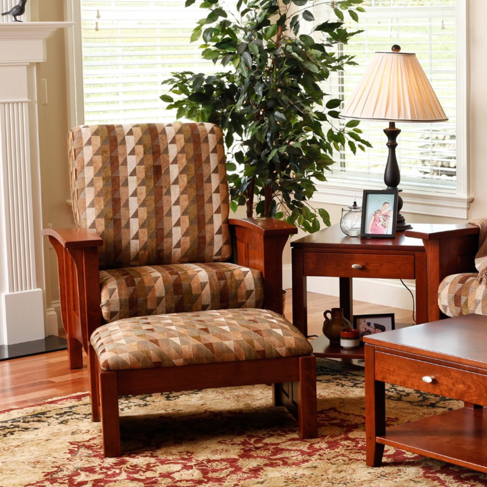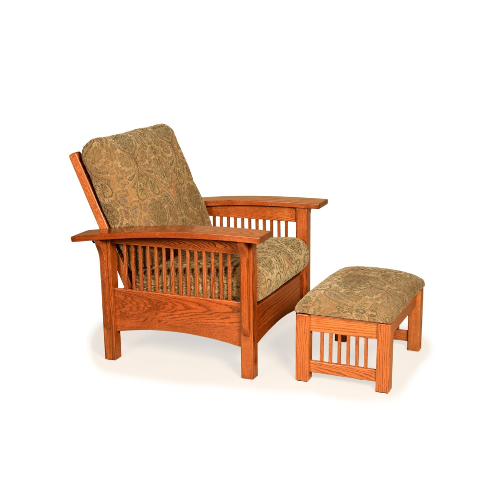 This Amish Morris Chair is comfortable, sleek in its design, and made using beautiful and durable solid wood. Choose from over 8 positions to incline back and relax in! The leather or fabric is zippered on and the cushions are reversible and removable. The ottoman cushion is not removable.