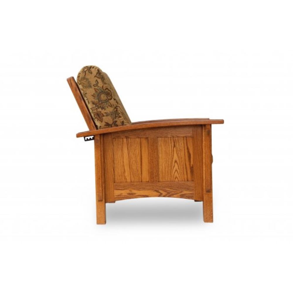 This beautiful Mission Morris Chair is shown in oak wood but is also available in cherry wood, quarter sawn oak wood or brown maple wood.