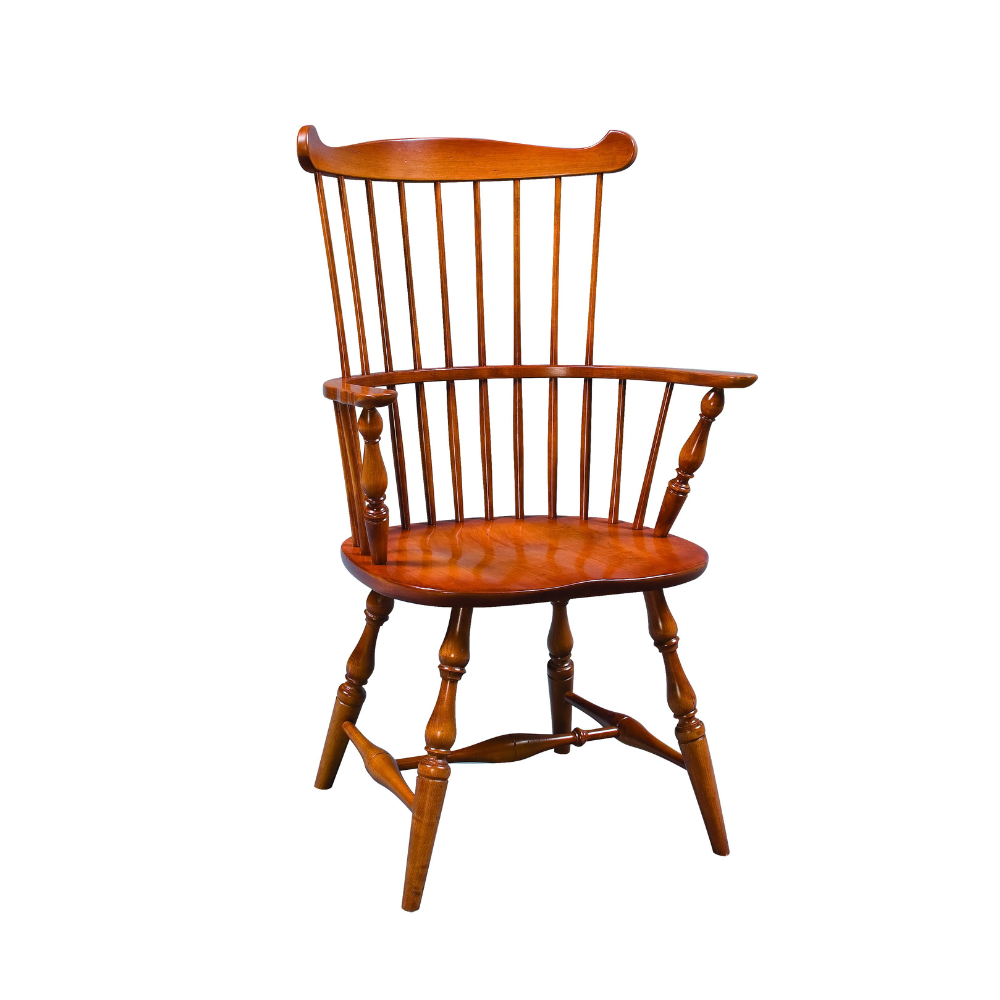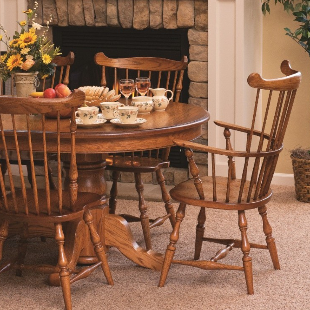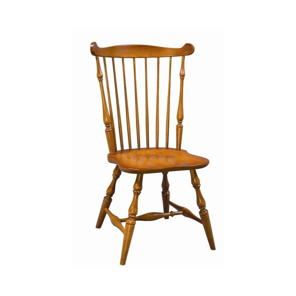 This Fanback Windsor chair is Amish made from solid oak, cherry, or maple wood. The Nantucket dining chair’s classic design has endless appeal. The Windsor style spindles make up the back with the back’s top finished off with decorative stiles. This Fanback Windsor chair features a molded seat and tilt back.
