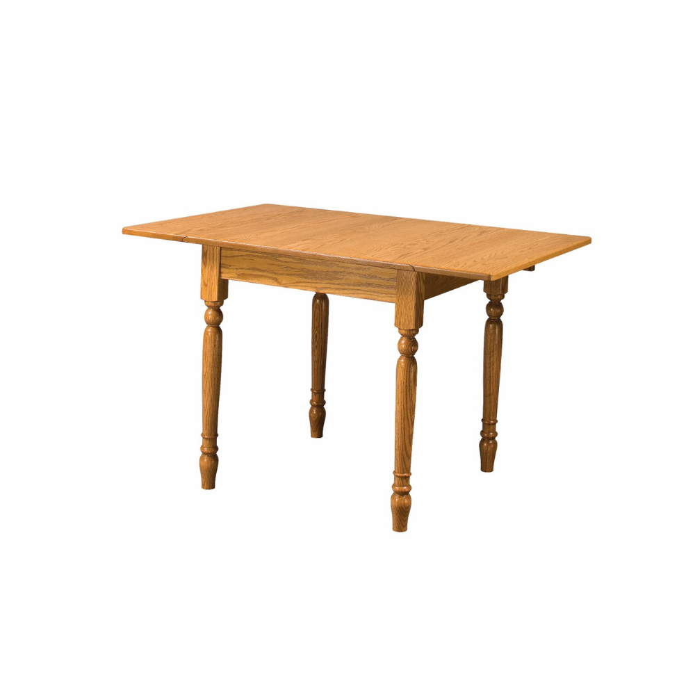 Manage a small dining area without losing space for your guests with this Amish made Rectangular Drop Leaf Dining Room Table. This is the smallest table we offer. The drop leaves make it especially convenient. Two different leg styles are available with this American made solid wood dining room table!