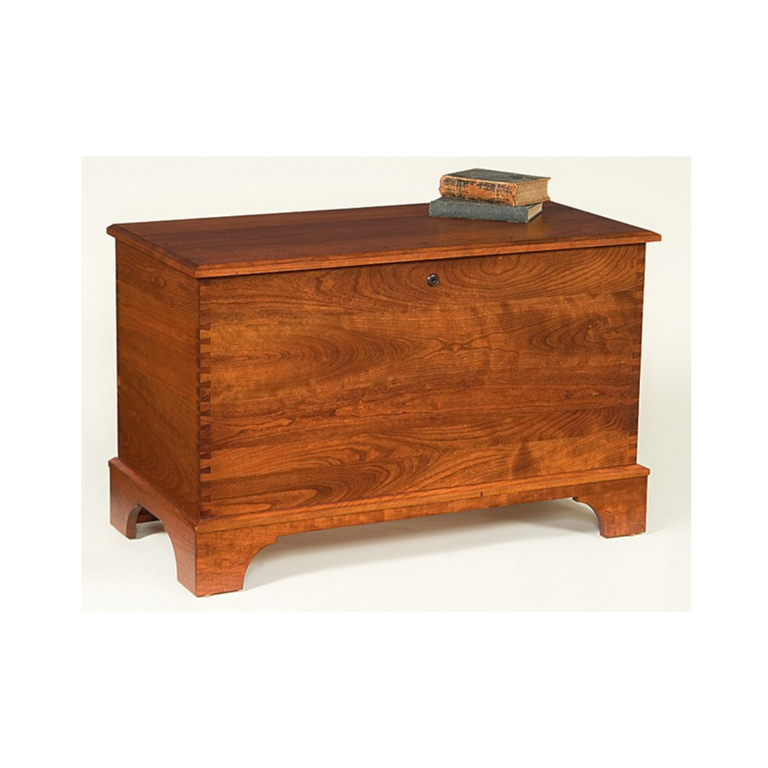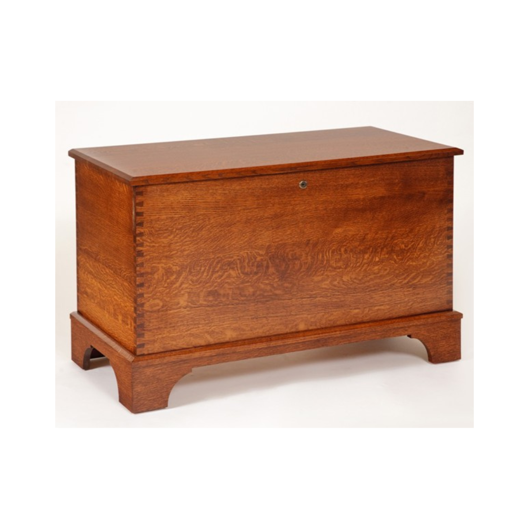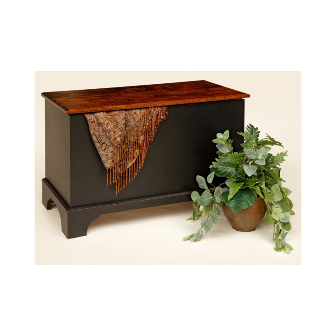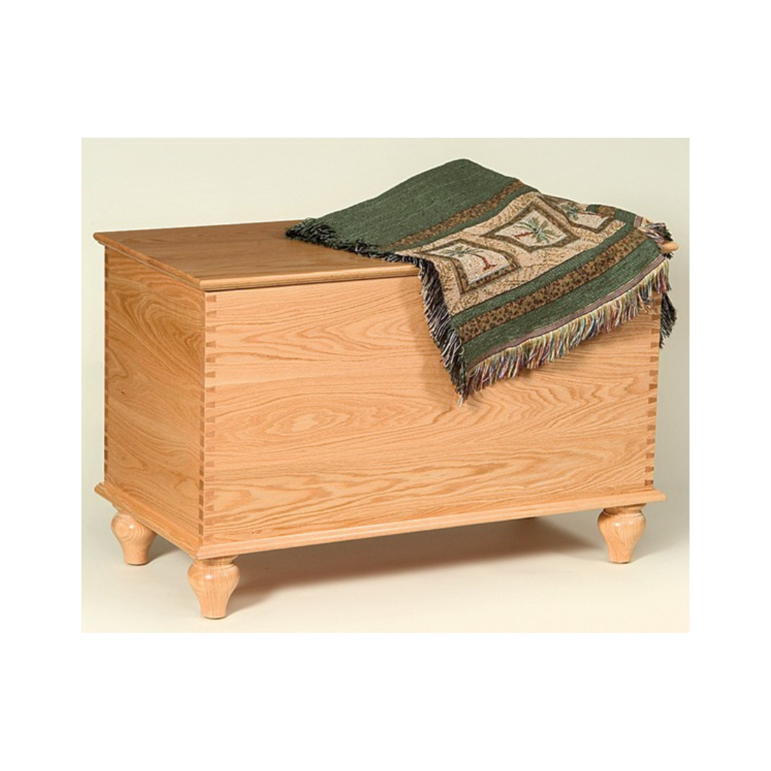 The Savannah Series is very similar to the Carriage House with the exception of the drawers. It is an excellent storage solution featuring added height and a shorter length. This series is available with a shaker base or elegant tulip feet. Comes standard with cedar bottom, lock, spring lid support and dovetail joints. Available in Oak, Cherry, Maple, Tiger Maple and Quarter-Sawn White Oak with your choice of stain and/or paint colors.