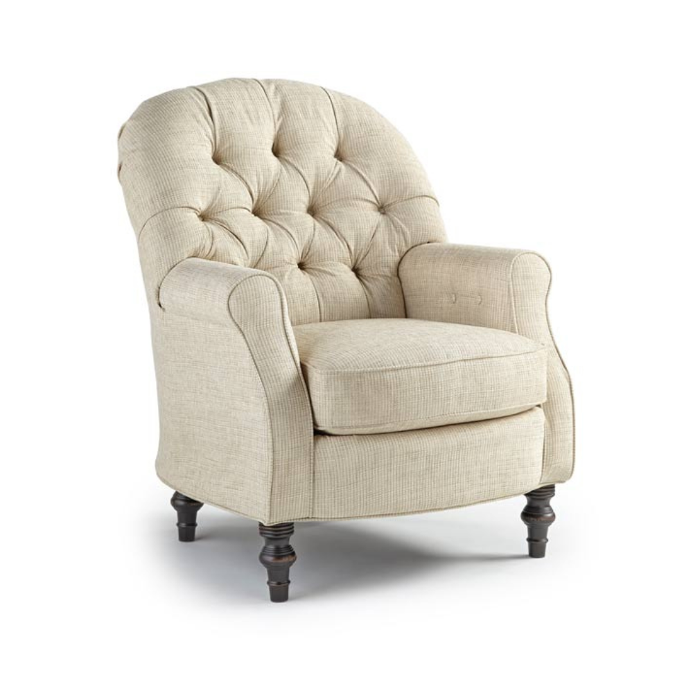 The invitation is always open to sit down with a good book or cozy up by a nice fire in this traditional chair. The precision details shine in Truscott’s heavily button tufted back and arms, and extend to the floor with the charming turned wooden legs. Choose from hundreds of stylish fabrics. Matching ottoman available.